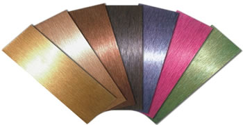 顏色分為本色不銹鋼、咖色、玫瑰金 、咖啡色、青銅色 、仿銅色、木紋、青銅色、鈦黑、鈦金、香檳色、藍色、銅包飾等72種顏色。最常用顏色是原色不銹鋼、玫瑰金不銹鋼、鈦黑不銹鋼這幾種顏色。